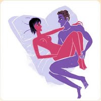 5. Colher: É uma das posturas mais confortáveis para a grávida e poderá ser praticada durante a gestação toda. O casal se encaixa de lado e a mulher pode usar um travesseiro pequeno sob a barriga para mantê-la apoiada. A postura deixa a barriga em posição de descanso, como se fosse em um ninho. Outra vantagem é que a coluna, às vezes prejudicada pelo peso da barriga, se mantém em linha reta.