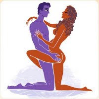 2. De joelhos: Ele se ajoelha e ela fica apoiada em um dos joelhos. A mulher pode abraçar a cintura do parceiro com a outra perna. Essa posição é sugerida para os primeiros meses de gravidez (até o terceiro mês), quando o útero ainda não se dilatou muito.